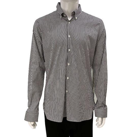 Camisa Burberry confeccionada em algodão e nylon na cor off white com estampa xadrez em tons de cinza e preto. Possui manga longa e fechamento por botões. Modelo: Slim. Tamanho: 42