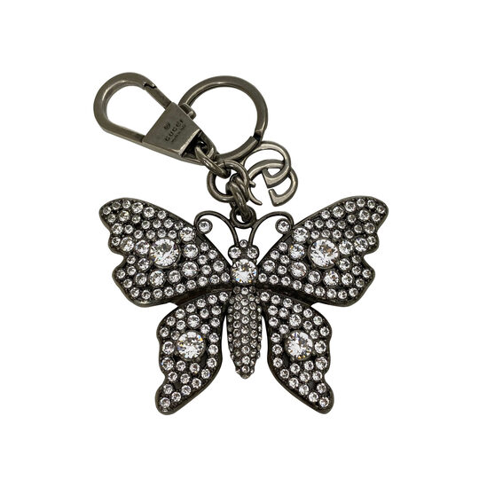 Chaveiro Gucci com detalhe de borboleta. Um simbólico emblema do Gucci Garden, a borboleta se tornou um sinônimo da marca. O emblema apresenta aplicações de cristais.