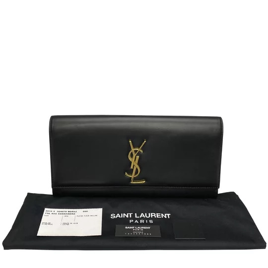 Clutch Saint Laurent Preta Moda plus size original brechó desapego desapego de luxo segunda mão second hand usado usado e bom estado conservado bolsas usadas bolsas segunda mao etiqueta unica enjoei peguei bode bolsas conservadas cansei vendi troca de luxo