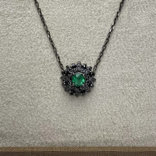 Gargantilha Carla Amorim Bachiana - Resort. O modelo é confeccionado em ouro negro com esmeralda e diamantes negros.