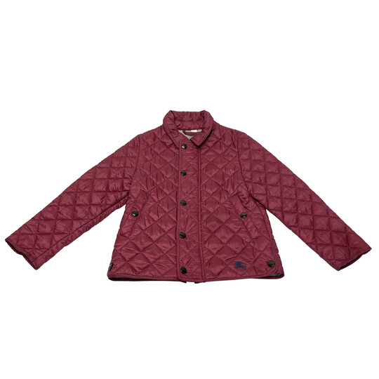 Jaqueta Burberry infantil confeccionada 100% em poliéster na cor vinho com forro em algodão. O modelo traz fechamento por zíper e botões e detalhes de bolsos frontais. Tamanho: 4 anos