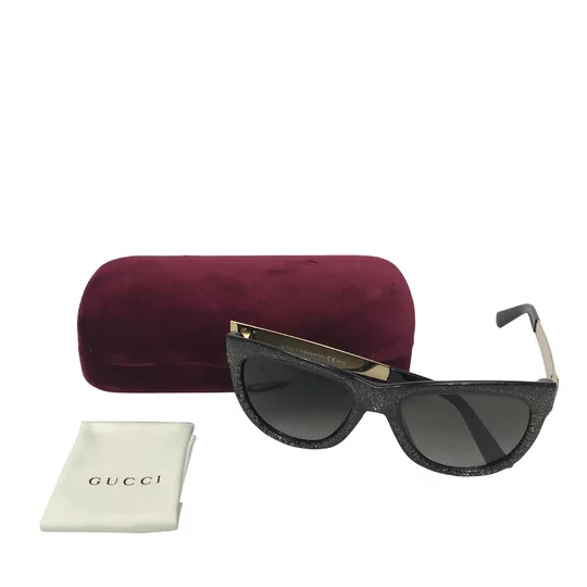 Óculos de Sol Gucci - GG 3739. Confeccionados em acetato com as hastes em metal dourado, os óculos apresentam efeito de glitter e logo da marca na lateral.