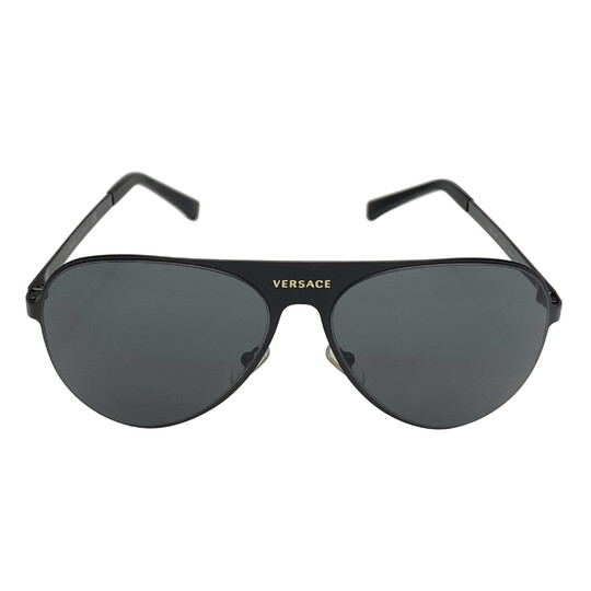 Óculos de Sol Versace - MOD2189 confeccionado em acetato na cor preta. O modelo apresenta estilo aviador e aplicação de logotipo da marca em metal dourado em ambas as hastes.