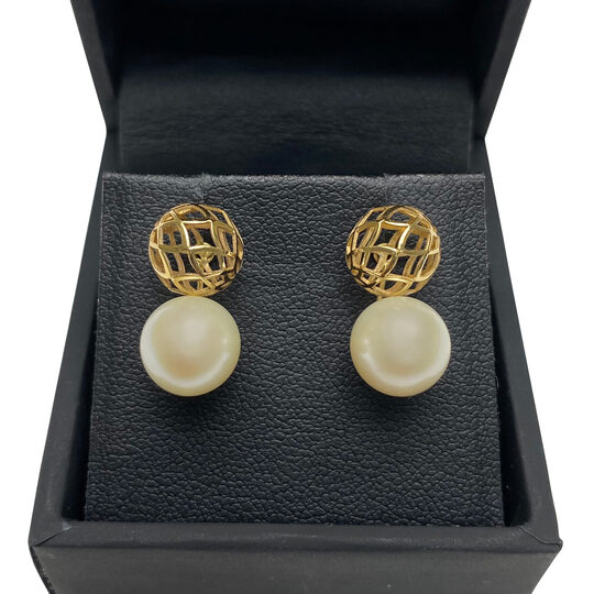 Par de Brincos Vivara Ouro Amarelo com Pérola Moda plus size original brechó desapego desapego de luxo segunda mão second hand usado usado e bom estado conservado bolsas usadas bolsas segunda mao etiqueta unica enjoei peguei bode bolsas conservadas cansei vendi troca de luxo