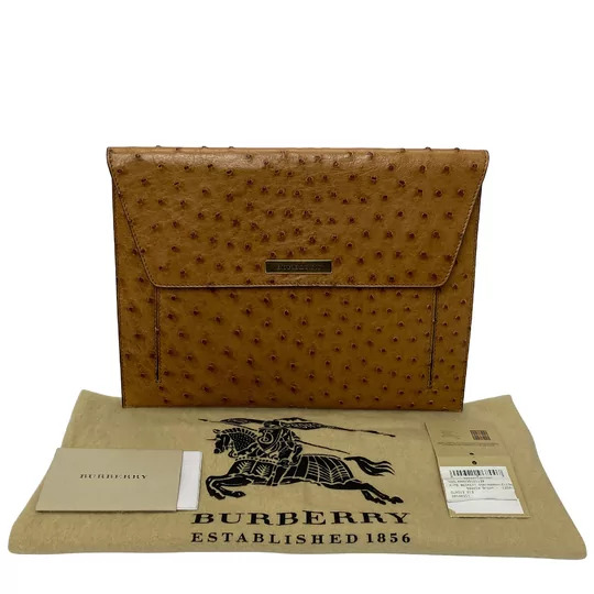 Porta-Ipad Burberry Couro de Avestruz burberry Moda plus size original brechó desapego desapego de luxo segunda mão second hand usado usado e bom estado conservado bolsas usadas bolsas segunda mao etiqueta unica enjoei peguei bode bolsas conservadas