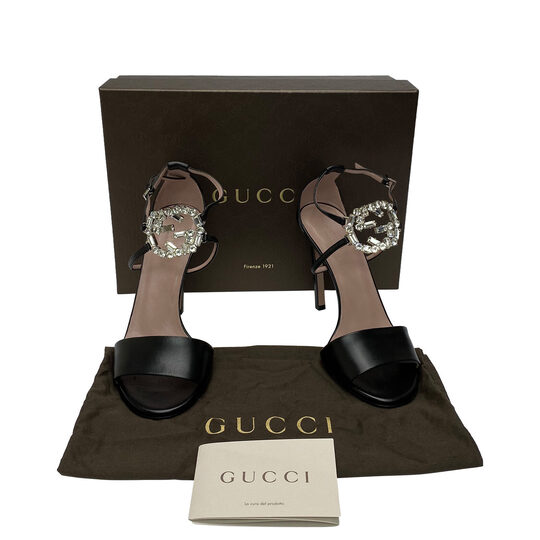 Sandália Gucci Crystal Preta gucci Moda plus size original brechó desapego desapego de luxo segunda mão second hand usado usado e bom estado conservado bolsas usadas bolsas segunda mao etiqueta unica enjoei peguei bode bolsas conservadas cansei vendi troca de luxo louis vuitton