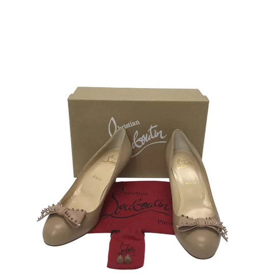Scarpin Christian Louboutin Verniz Nude e Laço com Spikes scarpin christian louboutin verniz nude laço spikes couro